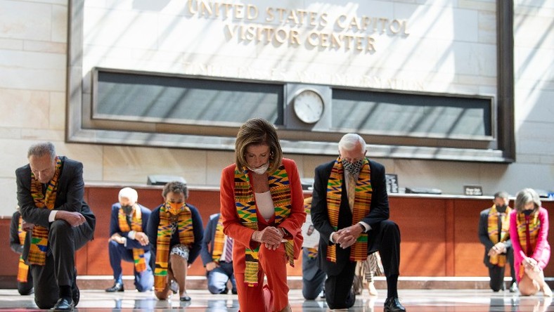 In the event that saw them address racism and people brutalities, the Democrats took a knee for 8 minutes 46 seconds, the time the police who has since been charged with murder knelt on the deceased’s neck causing his death.
